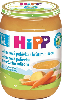 HiPP Polévka BIO Zeleninová s krůtím masem 190 gVše o produktuDoplňující informaceHodnocení produktuA protože v prvních třech letech života dítěte záleží na kvalitě každé lžičky, máme v HiPPu přísné BIO zásady: