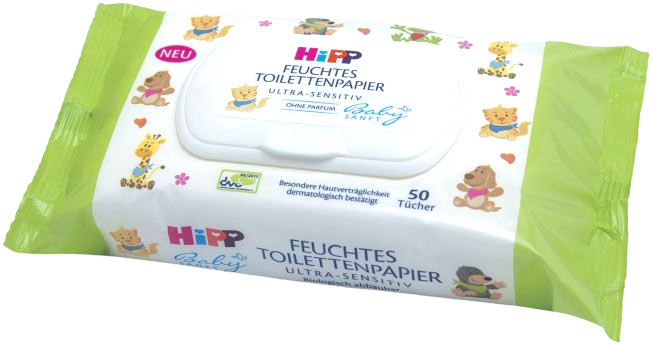 Čistící vlhčené ubrousky HiPP Babysanft mají mimořádně jemné vlákna s vysokou absorpční schopností. Jsou vhodné i na obličej a ruce, protože nejsou mastné. Růžové ubrousky Sensitive jsou napuštěny pleťovým mlékem s výtažkem s BIO mandlí. Modrá varianta Utra Sensitive obsahuje 99 % vody a jsou vhodné i pro pokožku se sklonem k atopické dermatitidě.