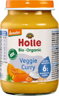 Holle = víc jenže jen bio. Tradiční prémiová švýcarská značka přináší vašim dětem od 6. měsíce chutnou přesnídávku veggie curry- bez přidaného cukru, soli, konzervačních látek a aromat. Je označena značkou demeter, která je ekvivalentem nejvyšší kvality dětské výživy z biologického zemědělství na trhu a zároveň je synonymem pro udržitelné hospodářství - v souladu s přírodou. Produkt je CO2 neutrální. Více informací