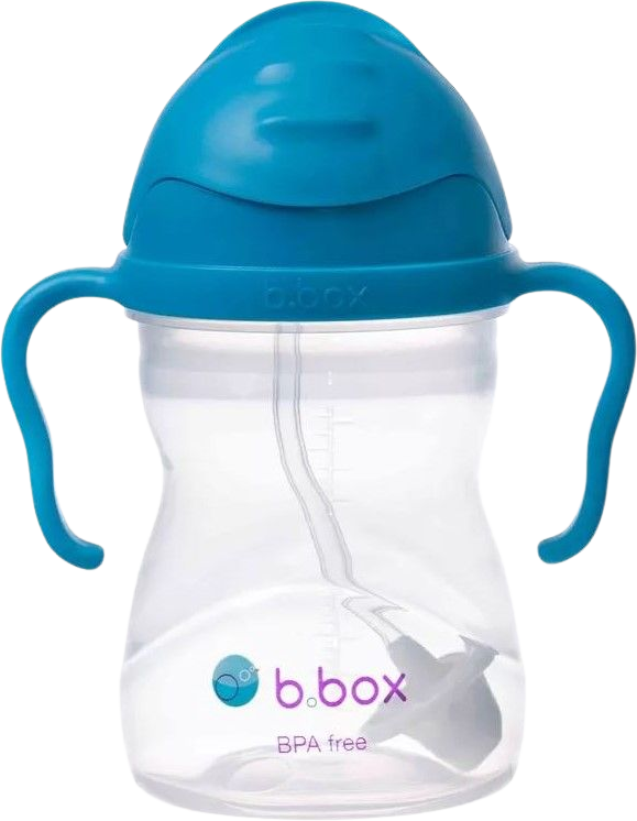 Když jsem synova začala učit na hrneček, dostala jsem doporučení na tento od značky B.box. Díky gumovému brčku a těžítku na konci brčka se z ní syn naučil pít docela rychle. Zároveň mi vyhovuje, že se hrneček nevylévá.