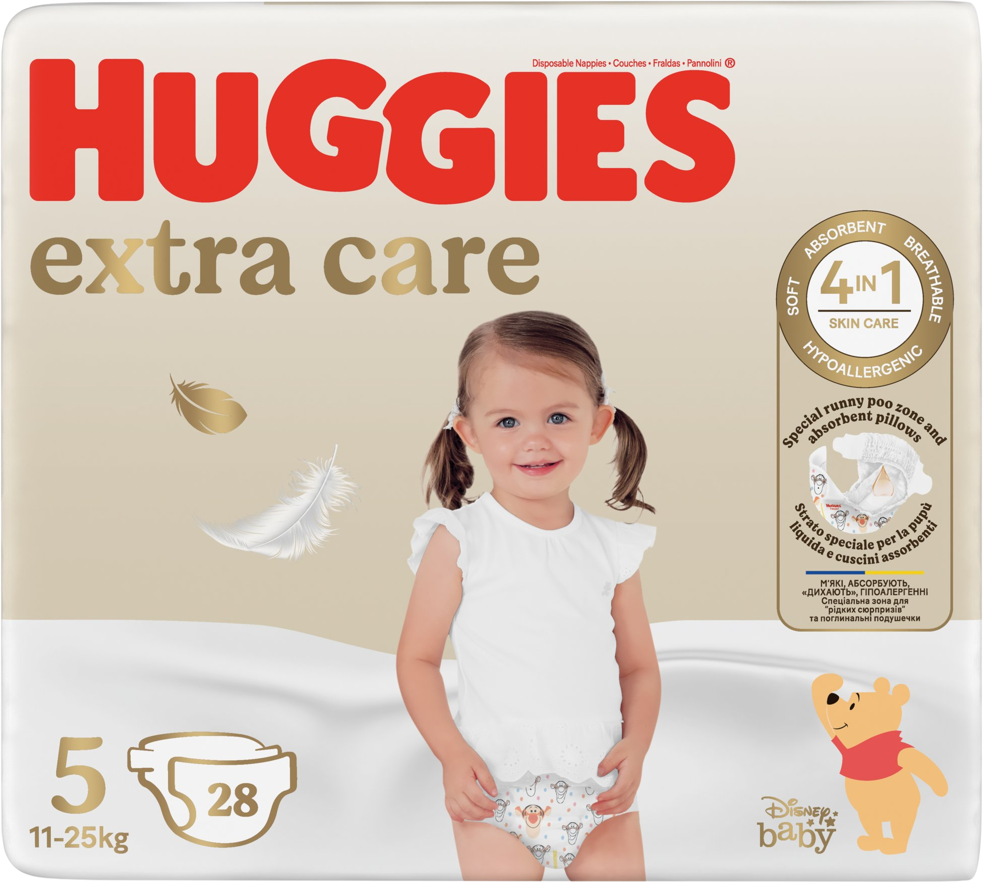 Inovované prémiové jednorázové plenky Huggies EXTRA CARE jsou nejjemnější a nejměkčí plenky pod značkou HUGGIES®. Dvě speciální absorpční zóny pro ještě lepší ochranu pokožky – měkké polštářky vpředu a kapsa pro tekutou stolici vzadu. Plenky Huggies® Extra Care jsou dermatology schválené a hypoalergenní, vhodné pro pokožku se sklonem k podráždění. Indikátor vlhkosti změní barvu, když je čas plenku vyměnit. Měkký elastický pas pomáhá předcházet opruzeninám na citlivé dětské pokožce.