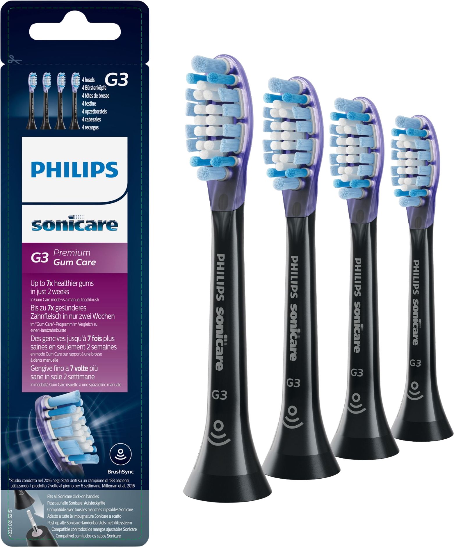 Sonicare G3 Premium Gum Care Standardní velikost hlavice sonického kartáčku 4 ks v balení, Standardní velikost, Nasazovací, Párování režimů BrushSync. Více informací