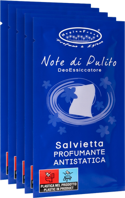 HygienFresh Antistatické parfémované ubrousky do sušičky s vůní Note di pulito 5 ksVše o produktuDoplňující informaceHodnocení produktuDodejte svému prádlu dokonalou hebkost a dlouhotrvající svěžest. Antistatické ubrousky do sušičky HygienFresh s jemnou vůní Note di Pulito provoní každý kousek oblečení a zároveň usnadní sušení. Speciálně vyvinuté aktivní složky pronikají hluboko do textilních vláken, zanechávají prádlo jemné, voňavé a snadno žehlitelné, zabraňují žmolkování a snižují statický náboj.