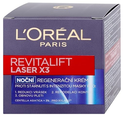 PB L'Oréal Paris Revitalift Laser X3 noční péče proti vráskám 50mlVše o produktuDoplňující informaceHodnocení produktuKrém vytvoří na pokožce virtuální masku, která uvolňuje aktivní látky v průběhu celé noci.