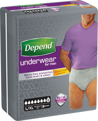 Pánské natahovací kalhotky vhodné pro silný únik moči. Depend® Super jsou vyrobeny z jemného bavlněného materiálu, který zajišťuje pohodlí a je šetrný i k citlivé pokožce. Více informací