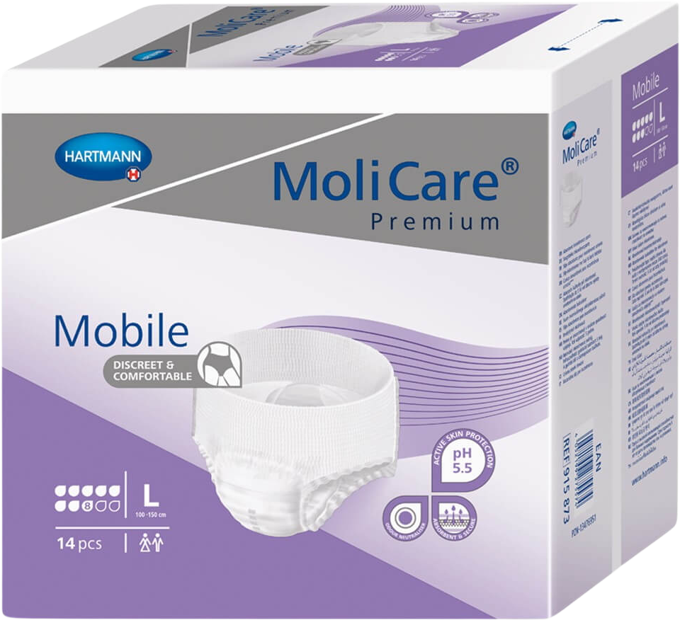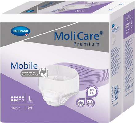 Navlékací kalhotky MOLICARE MOBILE pro osoby se středním a těžkým únikem moči. Více informací