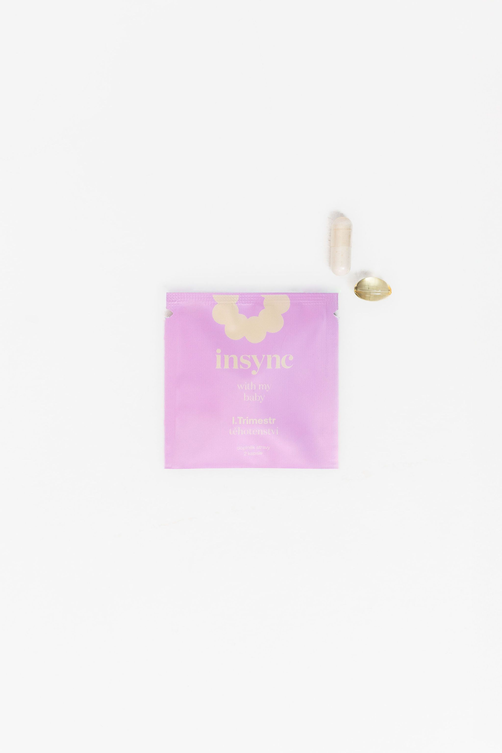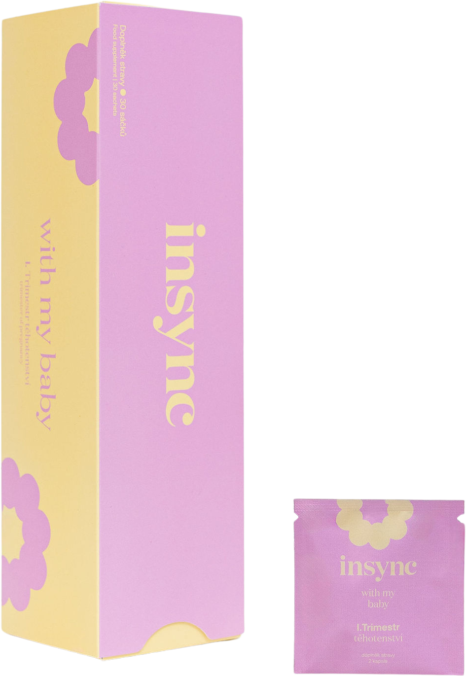 InSync with my baby 1. triemstr je doplněk stravy určený pro těhotné ženy v prvním trimestru těhotenství. Každý sáček bsahuje kombinaci vitaminů, minerálů, omega-3 mastných kyselin a dalších látek ve vysoce vstřebatelných formách (např. Quatrefolic®, bisglycináty, methylkobalamin, lipozomální vitamin C). Více informací