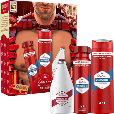 Ptáte se proč? Protože s vůněmi Old Spice parfémové kvality jednoduše nemůžete udělat chybu. Dárková sada Ironman od Old Spice obsahuje deodorant ve spreji, pánský sprchový gel a vodu po holení Whitewater. Toaletní potřeby jsou zabalené v kartonové krabičce s designem Ironman, z níž si můžeš vyrobit domino. Jednoduše vystříhej hrací kameny ze stran krabičky a užij si voňtastické domino.