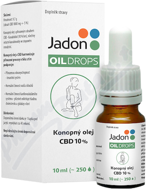 Doplněk stravy Jadon Oil Drops je konopný olej s obsahem CBD 10 %.