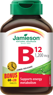 Jamieson Vitamín B12 methylkobalamin 1200μg s postupným uvolňováním 80 tabletVše o produktuDoplňující informaceHodnocení produktu