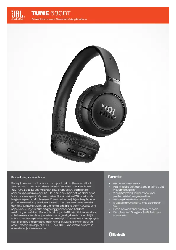 JBL Tune 530BT Black Bezdrátová Bluetooth® sluchátka na ušiVše o produktuDoplňující informaceHodnocení produktuKlíčové vlastnosti: