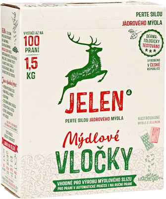 Jelen mýdlové vločky vhodné pro výrobu mýdlového slizu. Pro praní v automatické pračce i na ruční praní. Má sílu až 300 praní. Více informací