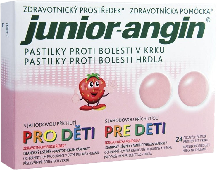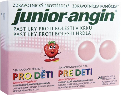 Pastilky proti bolesti v krku junior-angin jsou zdravotnický prostředek určený k ochraně sliznic ústní dutiny a hltanu, především pri bolestech v krku. Islandský lišejník se při cucání ukládá jako rostlinný film na sliznici ústní dutiny a hltanu a tím ji chrání. Postupné cucání zaručuje rovnoměrné rozdělení účinných látek na sliznici ústní dutiny a hltanu. Další složky, zinek a pantothenan, slouží jako ochranný komplex sliznice.