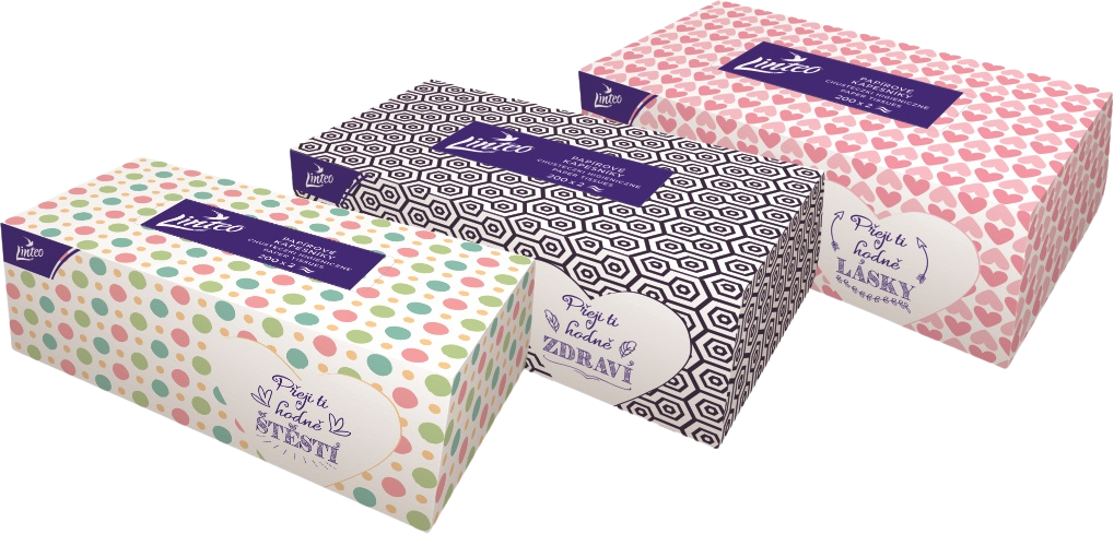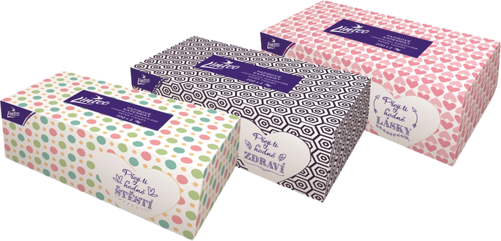 Papírové kapesníky Linteo jsou kromě svého praktického využití také estetickým doplňkem domácnosti i kanceláře. Z trojího designového provedení s různými vzory si jistě vybere každý dle svého vkusu.