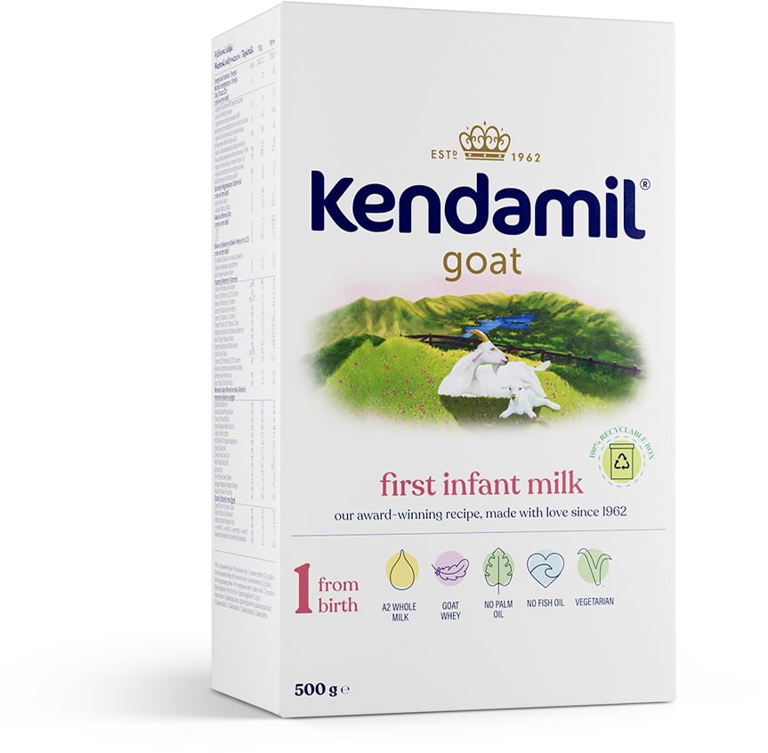 Kendamil kozí kojenecké mléko 1, 500 g, počáteční mléčná kojenecká výživa v prášku. Potravina je určená pro výživu kojenců od narození, pokud nemohou být kojeni. Více informací