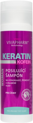 Posilující šampon vhodný pro oslabené, řídnoucí a vypadávající vlasy. Speciální kombinace aktivních látek jako keratin a kofein, doplněná o ceramidy a vitamíny B6 a B3, aktivně působí na kmenové buňky vlasového folikulu a tím účinně omezuje vypadávání vlasů, například v průběhu menopauzy. Obsažené aminokyseliny a Panthenol stimulují kořínky vlasů během mytí, podporují regeneraci vlasové pokožky a aktivují růst vlasů.