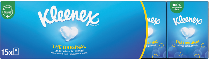 Kleenex® Original Mini Hanks papírové kapesníky 15 baleníVše o produktuDoplňující informaceHodnocení produktuKdyž se cítíme nepříjemně, potřebujeme kapesník, kterému můžeme důvěřovat. KLEENEX® Original Mini jsou kapesníky pro široké použití, s nádechem přírodního hedvábí. Měkký a zároveň odolný papírový kapesník v mini velikosti je všestranný ve všech situacích. Vejde se do kapsy nebo tašky a je každodenní nezbytností.