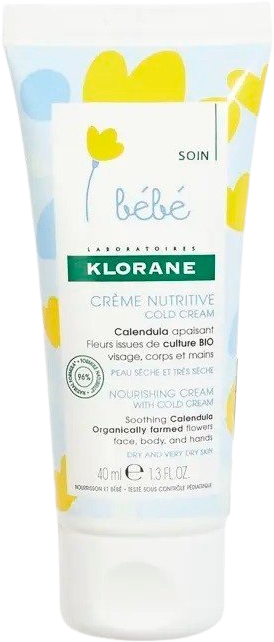Tento vyživující krém pro děti obsahuje přírodní a účinné aktivní složky : zklidňující měsíček ý, olej ze světlice barvířské, který obnovuje lipidy, a Cold Cream Klorane. Dohromady tvoří opravdový vyživující komplex. Jemné složení s 96 % složek přírodního původu* pomáhá chránit a hydratovat i tu nejcitlivější pokožku již od narození. Testováno pod dohledem pediatrů**. Sametová nelepivá struktura poskytuje dítěti pohodlí a relaxaci a zanechává jemnou květinovou vůni. Pokožka je zklidněná, chráněná a intenzivně vyživená***.