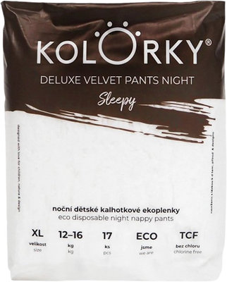Kolorky DELUXE VELVET PANTS NIGHT Sleepy vel. XL (12-16 kg) 17 ksVše o produktuDoplňující informaceHodnocení produktuNové noční kalhotkové plenky, které navazují na naše úspěšné DELUXE VELVET PANTS a jsou určeny pro klidnou noc vašich malých neposedů. Díky elastickému pasu kalhotkové plenky snadno nasadíte. Mají sametový povrch, indikátor vlhkosti a savé jádro nové generace se zvýšenou absorpční vrstvou, díky tomu je plenka tenká, rychle odvede vlhkost pryč a zanechá pokožku dítěte suchou po celou noc. Manžety se dají na boku lehce roztrhnout a lepicí proužek usnadní zabalení použité plenky. Samozřejmostí je i krásný design s názvem Sleepy, který vykouzlí úsměv na tváři dětí i dospělých.