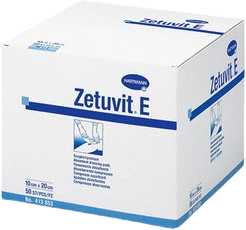 Zetuvit - kompres s vysokou savou schopností je určen na ošetření silně secernujících ran. Vnější obal, který se skládá z dvouvrstvého netkaného textilu z hydrofobních polyamidových vláken, zamezuje přilepení k ráně. Vnitřní vrstva z netkaného textilu z hydrofilních vláken viskózové tříště působí jako kapiláry, které rychle odvádějí sekret do savého jádra.