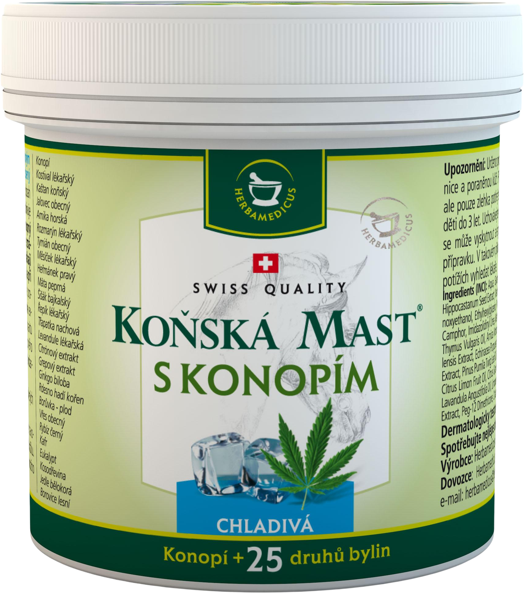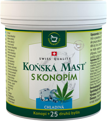 Jedná se o jedinečný balzám vyrobený z konopného oleje a 25 druhů bylin. Koňská mast s konopím je vyrobena podle tradiční švýcarské receptury. Více informací