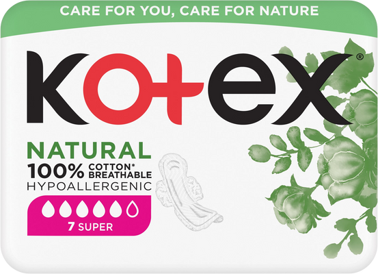 Vrchní vrstva hypoalergenních vložek Kotex® NATURAL je zcela šetrná k životnímu prostředí je vytvořené bez použití škodlivých látek, barviv a vůní, obsahují pouze bavlnu. Více informací