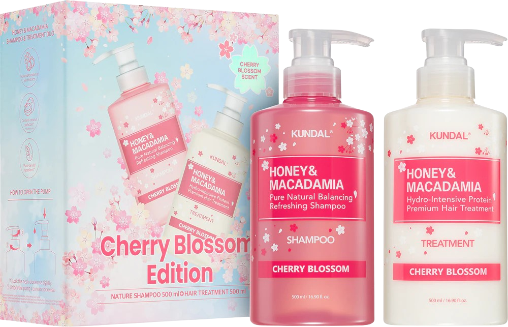 Kundal Cherry Blossom Edition - speciální edice šampon+kondicionér, vůně Třešňový květVše o produktuDoplňující informaceHodnocení produktuTato dárková sada je navržena pro kompletní požitek z péče o vlasy s produkty, které spolupracují, aby byly vaše vlasy jemné, hladká a vyživené.
