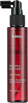 Kofein, extrahovaný ze syrových zelených fazolí, je vynikajícím přírodním zdrojem výživy, jehož výsledkem je vlhká, vyvážená a zdravá pokožka hlavy. Kundal's Scalp Care Tonic+ obsahuje 56,51 % extraktu z listů Pinus Densiflora (Borovice hustokvětá) ke zmírnění podráždění a zánětu pokožky hlavy.