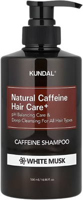 Kundal Natural Caffeine Hair Care, White Musk 500 mlVše o produktuDoplňující informaceHodnocení produktuŠampon proti vypadávání vlasů KUNDAL obsahuje silný kofein získaný ze zeleného čaje, který snižuje vypadávání a řídnutí vlasů stimulací vlasové pokožky a folikulů. Funguje pro každého, podporuje zdravý růst vlasů tím, že vyživuje a posiluje od kořínků ke konečkům. Obsahuje také přírodní blokátor DHT (hormonu proti vypadávání vlasů) odvozený z kofeinu se směsí 25 rostlinných extraktů.