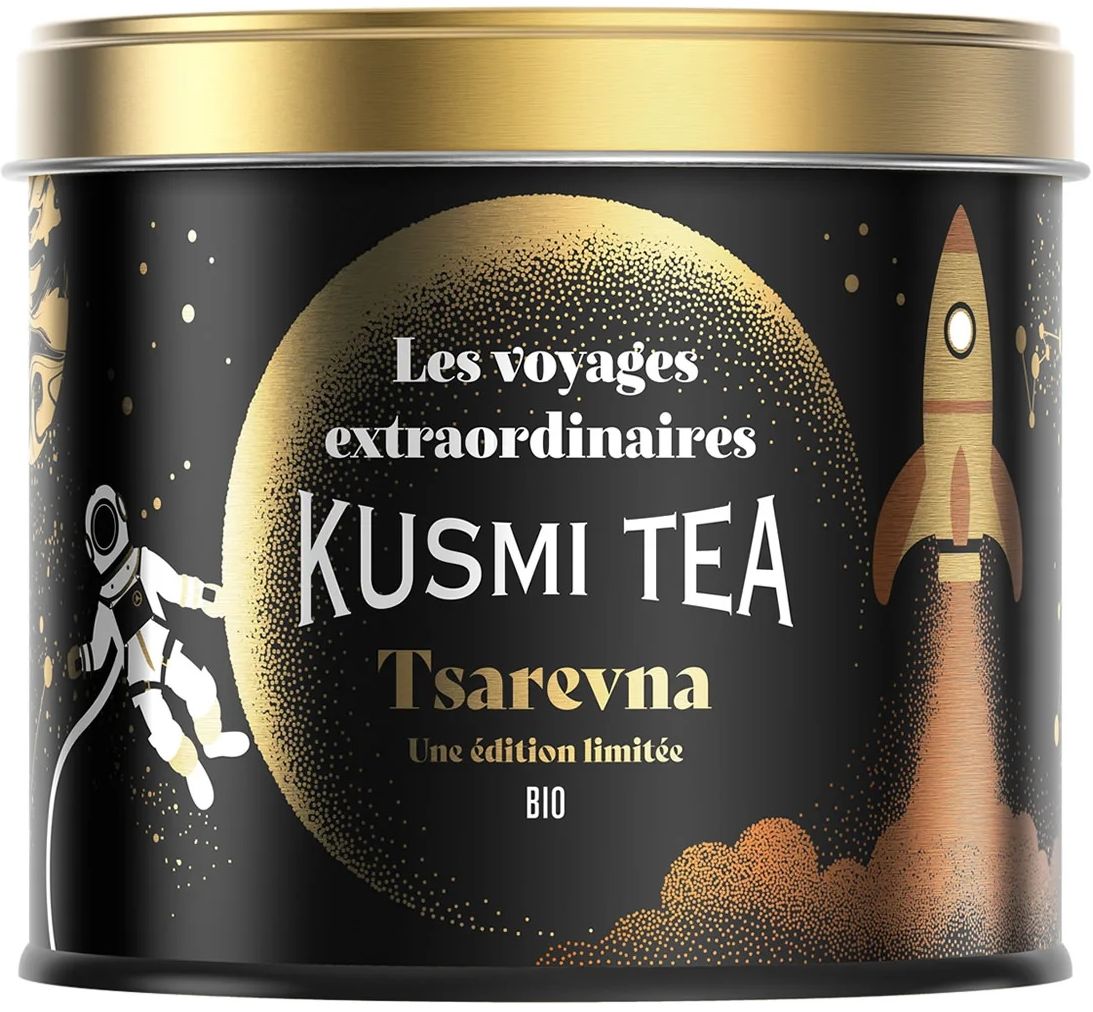 Kusmi Tea Sypaný černý vánoční čaj Tsarevna Bio, kovová dóza, 120 gVše o produktuDoplňující informaceHodnocení produktuVánoční čaj Tsarevna se ukrývá v třpytivé kovové dóze, která má každý rok originální design a představuje tak i oblíbenou sběratelskou příležitost. V letošním roce vás potěší nejen lahodný bio organický černý čaj, ale i kovová dóza ozdobená motivy inspirovanými světem objevitelských dobrodružství podle Jula Verna, v případě Tsarevny jde o román Ze Země na Měsíc.