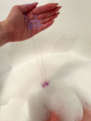 - Do teplé vody ve vaně vsypte přibližně 2 polévkové lžíce prášku (cca 60 g)