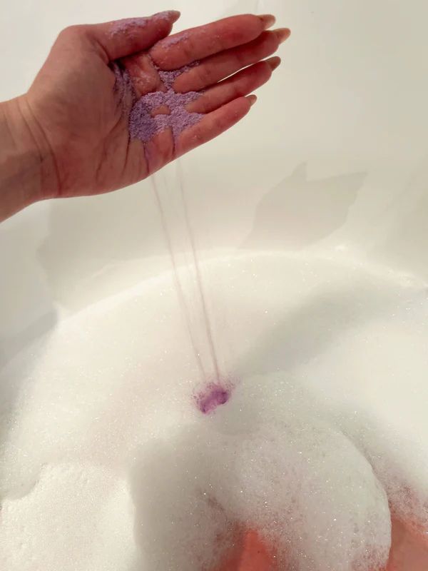 Sodium Bicarbonate (soda bikarbona), Citric Acid (kyselina citrónová), Sodium Lauryl Sulphoacetate (jemný tenzid z kokosového oleje), Magnesium Sulphate Heptahydrate (epsomská sůl), Prunus Amygdalus Dulcis Oil (mandlový olej), Alkanna Tinctoria Root Powder (prášek z kořene Alkany barvířské), Lavandula Angustifolia Oil (esenciální olej Levandule), *Linalool. *vyskytuje se přirozeně v esenciálních olejích.