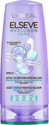 L'Oréal Paris Elseve Elseve Hyaluron Pure balzám, 200 mlVše o produktuDoplňující informaceHodnocení produktuMastné konečky a suché délky? Náš rehydratační balzám na vlasy s kyselinou salicylovou a hyaluronovou hydratuje vlasy až ke konečkům po dobu až 72 hodin. Pro hydratované, vzdušnější délky, bez zatížení.(1)