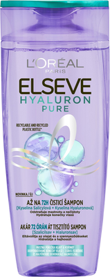 L'Oréal Paris Elseve Elseve Hyaluron Pure šampon, 400 mlVše o produktuDoplňující informaceHodnocení produktuMastné kořínky a suché délky? Náš čistící šampon na vlasy s kyselinou salicylovou a hyaluronovou odstraňuje mastnotu a nečistoty z pokožky hlavy a poskytuje rehydrataci po dobu až 72 hodin, pro čisté kořínky a hydratované délky, bez zatížení. (1)