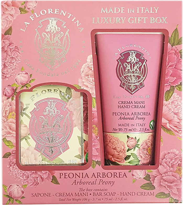 Dárková kazeta obsahuje mýdlo 106 g a krém na ruce 75 ml. Obsahuje přírodní výtažky z květů pivoňky. Vhodná jako malý dárek, nebo jako mýdlo a krém na cesty. Má certifikát VEGANOK - ve výrobku a jeho obalu nejsou použity žádné živočišné produkty. Neobsahuje parabeny. Více informací