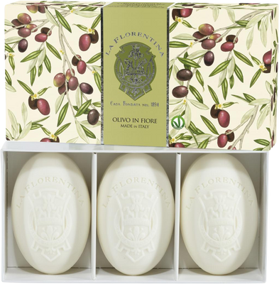 Ručně vyráběná toskánská mýdla s extra hydratačním a krémovým účinkem. Tato exkluzivní ručně vyráběná mýdla vám prozradí tajemství Toskánska spolu se všemi toskánskými vůněmi a chutěmi. Speciálně rostlinné složení obohacené o olivový olej a vybrané ingredience pro kvalitativně jedinečné a krémové mýdlo. 3 kusy mýdla po 150 g. Více informací