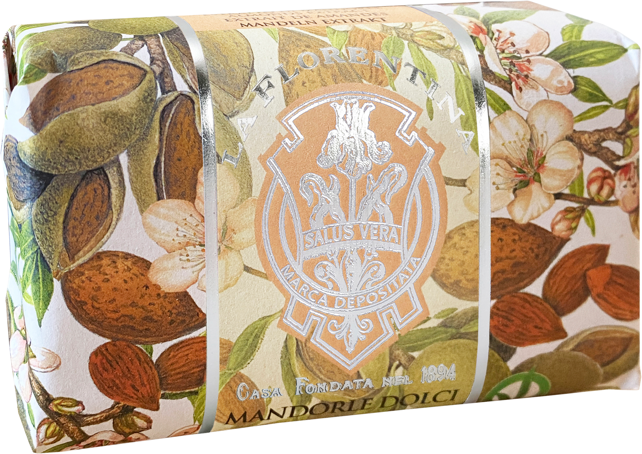 Jemnou každodenní péči vaší suché pokožce nabídne La Florentina Tuhé mýdlo Sweet Almond, které pokožku jemně čistí a zároveň dodává potřebnou hydrataci. Jeho receptura dávných mydlářských mistrů obsahuje 100 % ingrediencí přírodního původu a je založená na olivovém oleji a bambuckém másle, toto mýdlo navíc v koupelně vypadá velice elegantně.