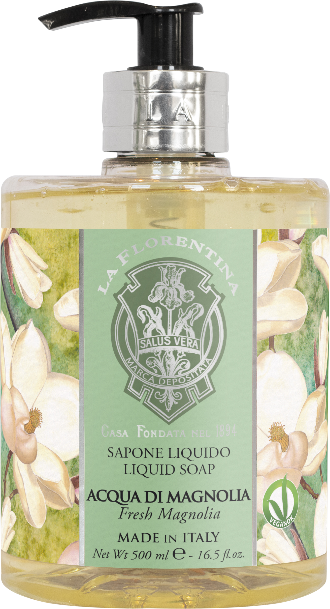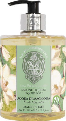 La Florentina Tekuté mýdlo Acqua di Magnolia 500 mlVše o produktuDoplňující informaceHodnocení produktuTekuté mýdlo La Florentina Acqua di Magnolia šetrně, ale účinně čistí pokožku vašich rukou a zajišťuje jim potřebnou výživu a péči. Má certifikát VEGANOK - ve výrobku a jeho obalu nejsou použity žádné živočišné produkty.