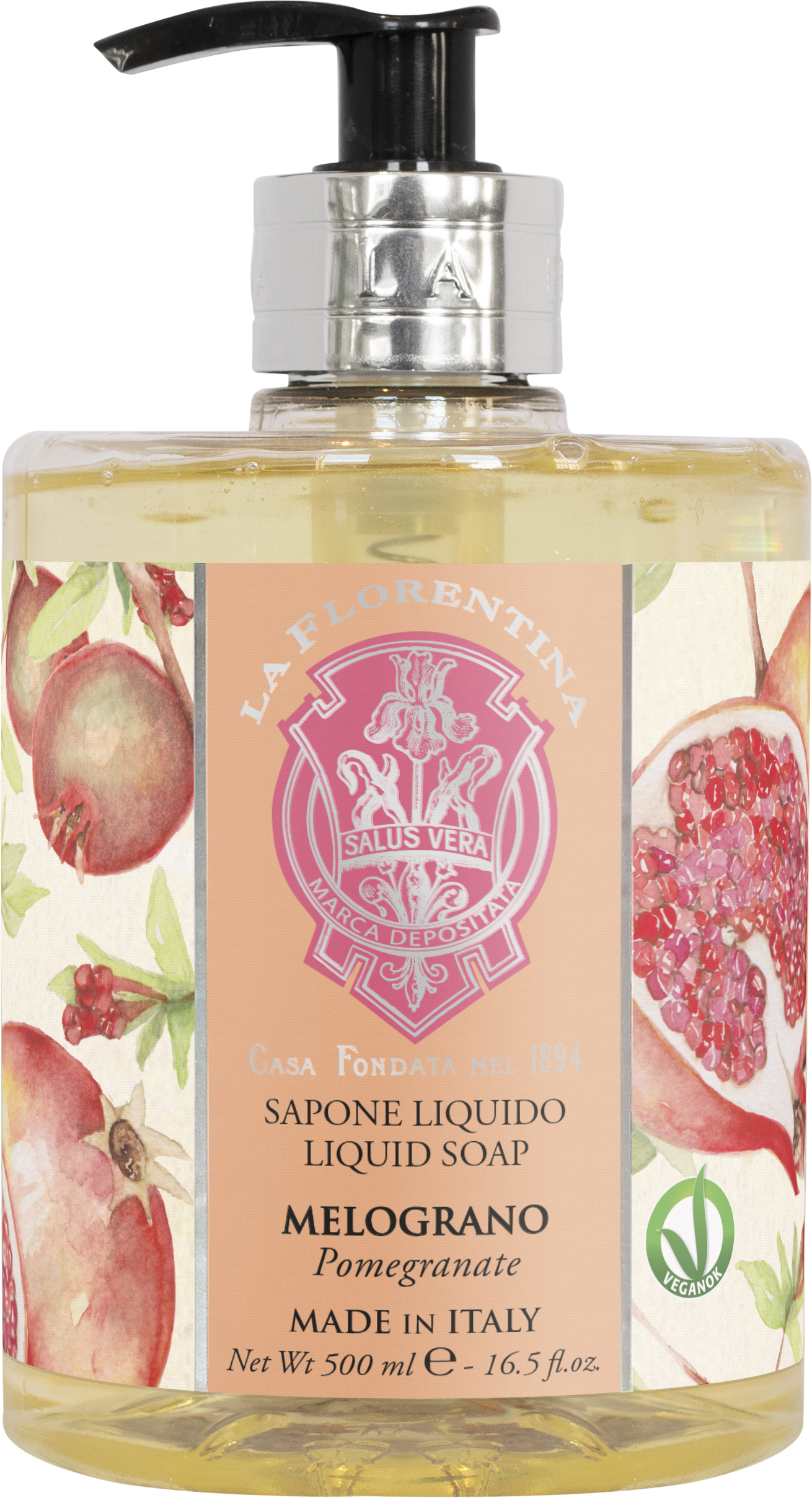 Tekuté mýdlo La Florentina Melograno šetrně, ale účinně čistí pokožku vašich rukou a zajišťuje jim potřebnou výživu a péči. Má certifikát VEGANOK - ve výrobku a jeho obalu nejsou použity žádné živočišné produkty.