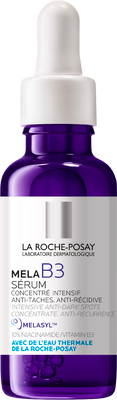LA ROCHE-POSAY Mela B3 sérum proti tmavým skvrnám s melasylem a 10% niacinamidu. Toto sérum proti stárnutí viditelně redukuje řadu zabarvení pleti, včetně slunečních skvrn, stařeckých skvrn, skvrn po akné (nebo pozánětlivé hyperpigmentace) a dokonce i těch nejodolnějších tmavých skvrn. Více informací