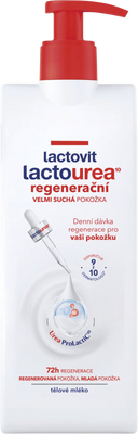 Lactovit LACTOUREA Tělové mléko regenerační 400 mlVše o produktuDoplňující informaceHodnocení produktuLactovit Lactourea tělové mléko obsahující 10 % Lactourey (jedinečný komplex kyseliny mléčné a čisté urey), dodává maximální hydrataci a obnovuje pokožku. Urea přirozeně hydratuje a zároveň zabraňuje ztrátě vody v pleti. Dermatologové ji doporučují k péči o velmi suchou pleť. Kyselina mléčná navíc posiluje hydrataci pleti.