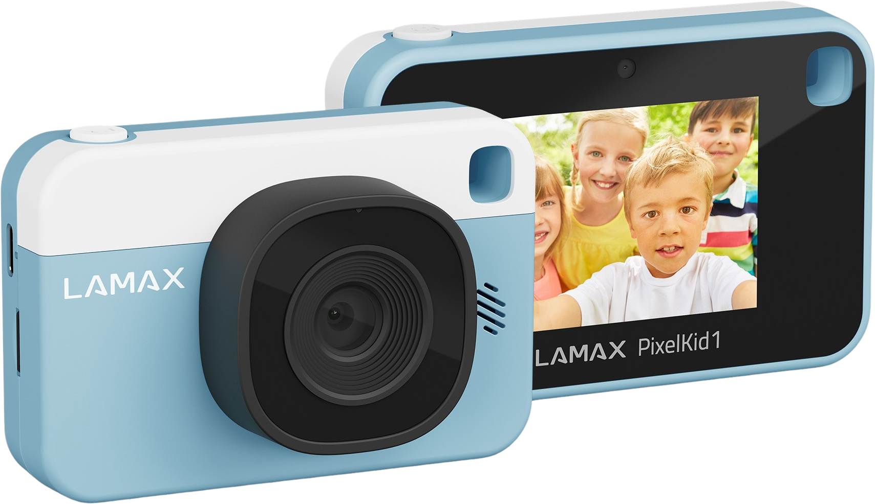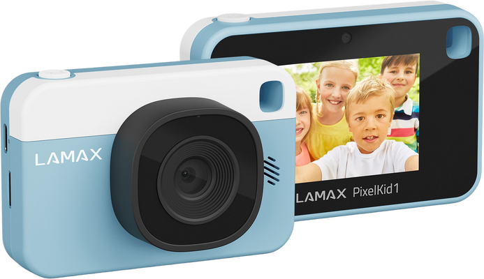 LAMAX PixelKid 1 není žádný nudný patron, ale fakt cool parťák, co má styl. Už jeho růžové a modré provedení rozhodně zaujme, a když mu dítě oblékne ještě slušivý kabátek v podobě silikonového pouzdra s dinosaurem, nikdo mu neodolá. Pokud si chce dítě pohrát a být originální, může si foťák dozdobit přiloženými samolepkami. Doladit k obrazu svému má možnost i fotky pomocí zabudovaných 28 foto rámečků, 10 efektů a 6 barevných filtrů.