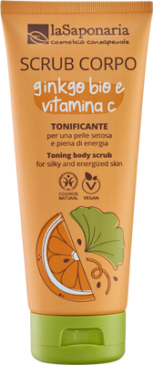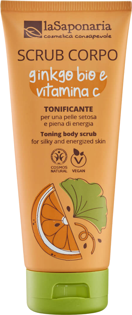 Tělový peeling laSaponaria s BIO ginkgo bilobou a vitamínem C má jemnou krémovou konzistenci, která lehce odstraní odumřelé buňky a zanechá pokožku hedvábně jemnou a zářivě svěží. Příjemně povzbudivá, citrusová vůně potěší smysly a dodá každému dni svěžest a energii. Jeho přírodní složení je vhodné i pro vegany a pyšní se certifikací BDIH Cosmos Natural.