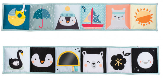 Často disponují poutkem, díky kterému je snadno připevníte na kočárek, postýlku nebo autosedačku. - PVC - Knížky a leporela pro nejmenší se obvykle vyrábí ze zdravotně nezávadného PVC. Jsou vhodné i na upoutání pozornosti například při koupání miminka ve vaničce.