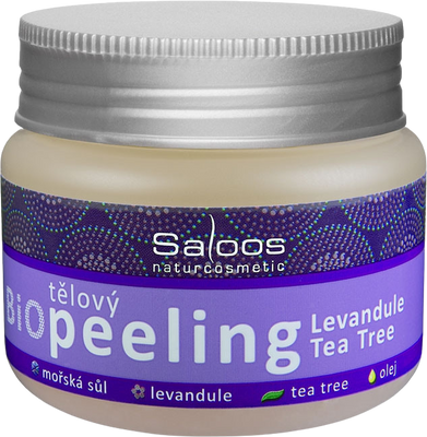 Zklidňující směs esenciálních olejů z jemně vonící levandule a osvěžujícího tea tree, drcených zrnek mořské soli a rostlinných bio olejů ohleduplně ošetřuje pokožku těla, hydratuje ji, zpevňuje a vyhlazuje. Obrušováním odumřelých buněk napomáhá její obnově a šetrně vyhlazuje i drsná místa pat a loktů. Ponořte se do vůně širých levandulových polí s impulsivní stopou čistého výtažku tea trea při masážní terapii bio tělovým peelingem.
