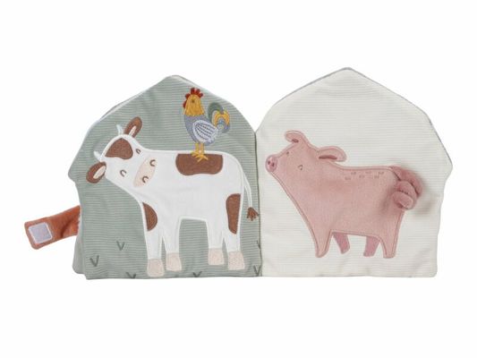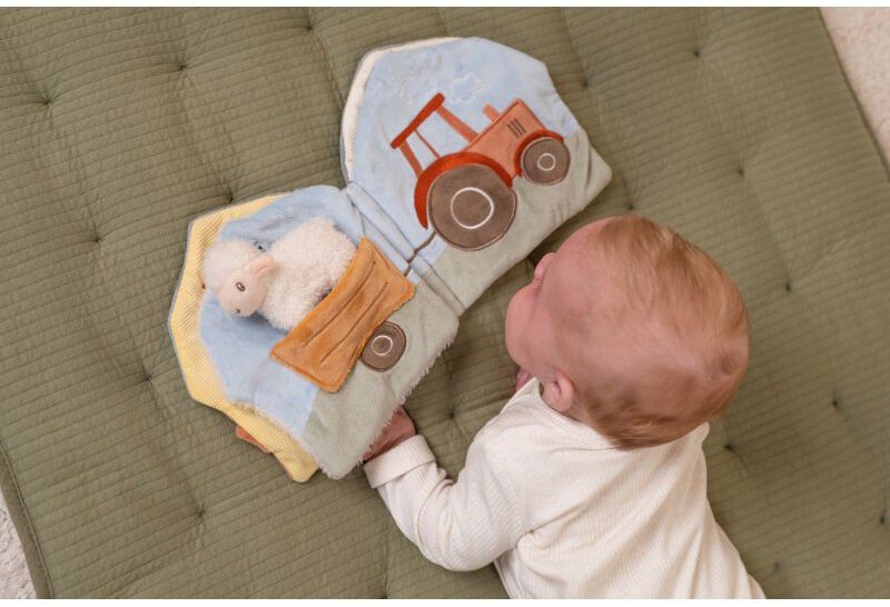 Měkká textilní knížka s krásnými motivy ze života na farmě upoutá pozornost vašeho dítěte množstvím aktivit, ukrytých na jednotlivých stránkách.