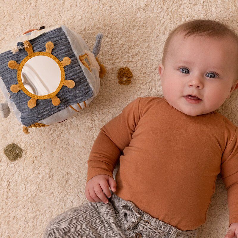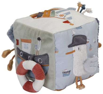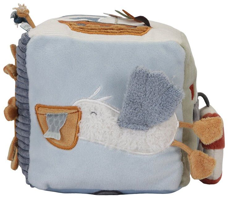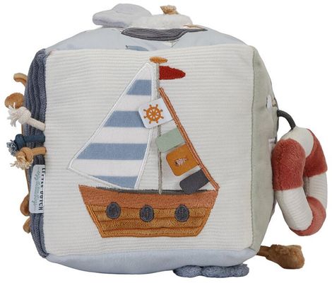 Měkká plyšová kostka Little Dutch z kolekce Námořnický záliv obsahuje krásné motivy ze života na moři a nabízí mnoho aktivit, které stimulují smysly dětí. Je toho tolik k objevování a hraní: různé textury, bezpečné zrcátko a chrastítko, která vydává zvuk při každém pohybu. Vhodné pro děti od narození.