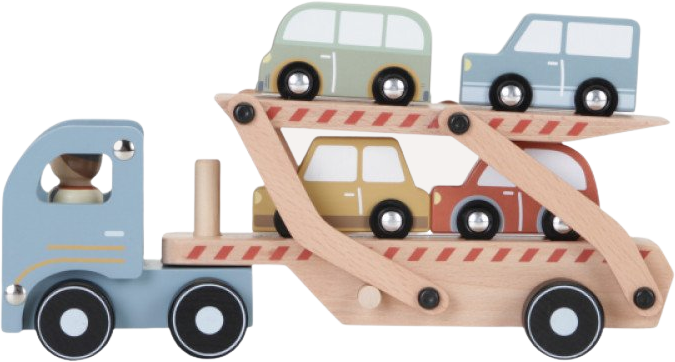 Dřevěný kamion se 4 auty je tou pravou hračkou pro všechny malé řidiče. Sklápěcí nákladní plocha umožní autům pohodlně najet na kamion a stejně pohodlně z něj opět sjet.