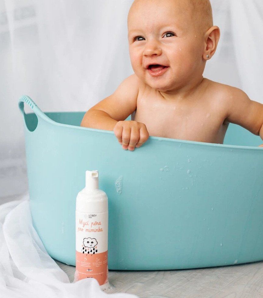 - Mycí pěny stačí použít pouze malé množství, které snadno rozetřete po pokožce miminka