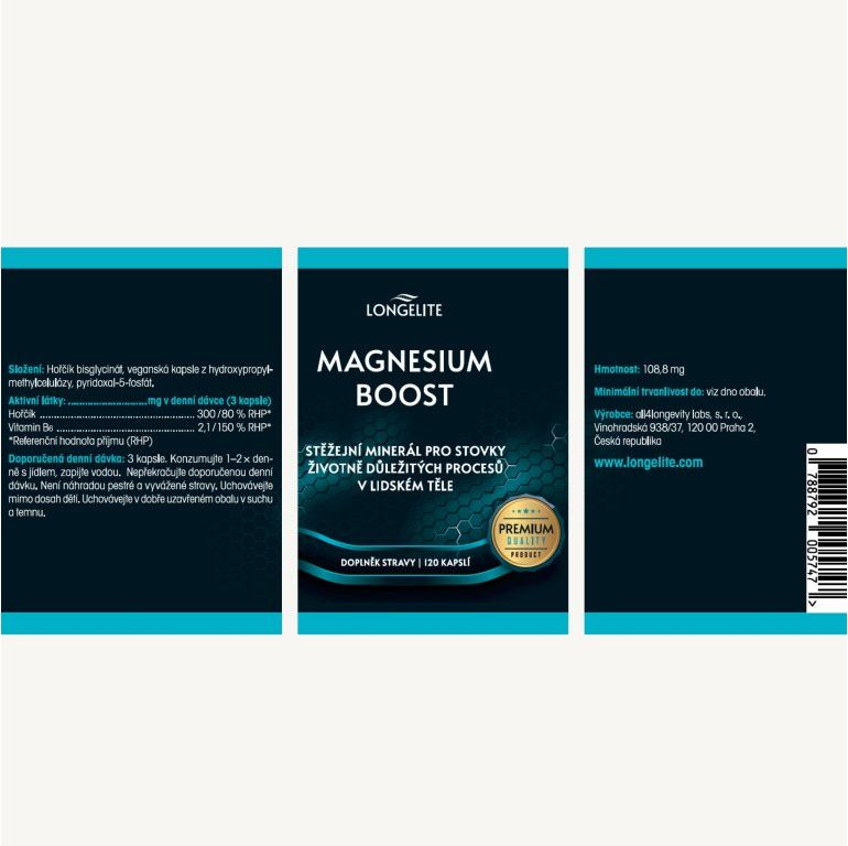 Longelite Magnesium Boost je kombinace dobře vstřebatelného hořčíku ve formě bisglycinátu a aktivní formy vitamínu B6 (P-5-P). Hořčík je minerál, který je zapojen do stovek enzymatických procesů v těle, včetně tvorby energie (ATP) a syntézy bílkovin.